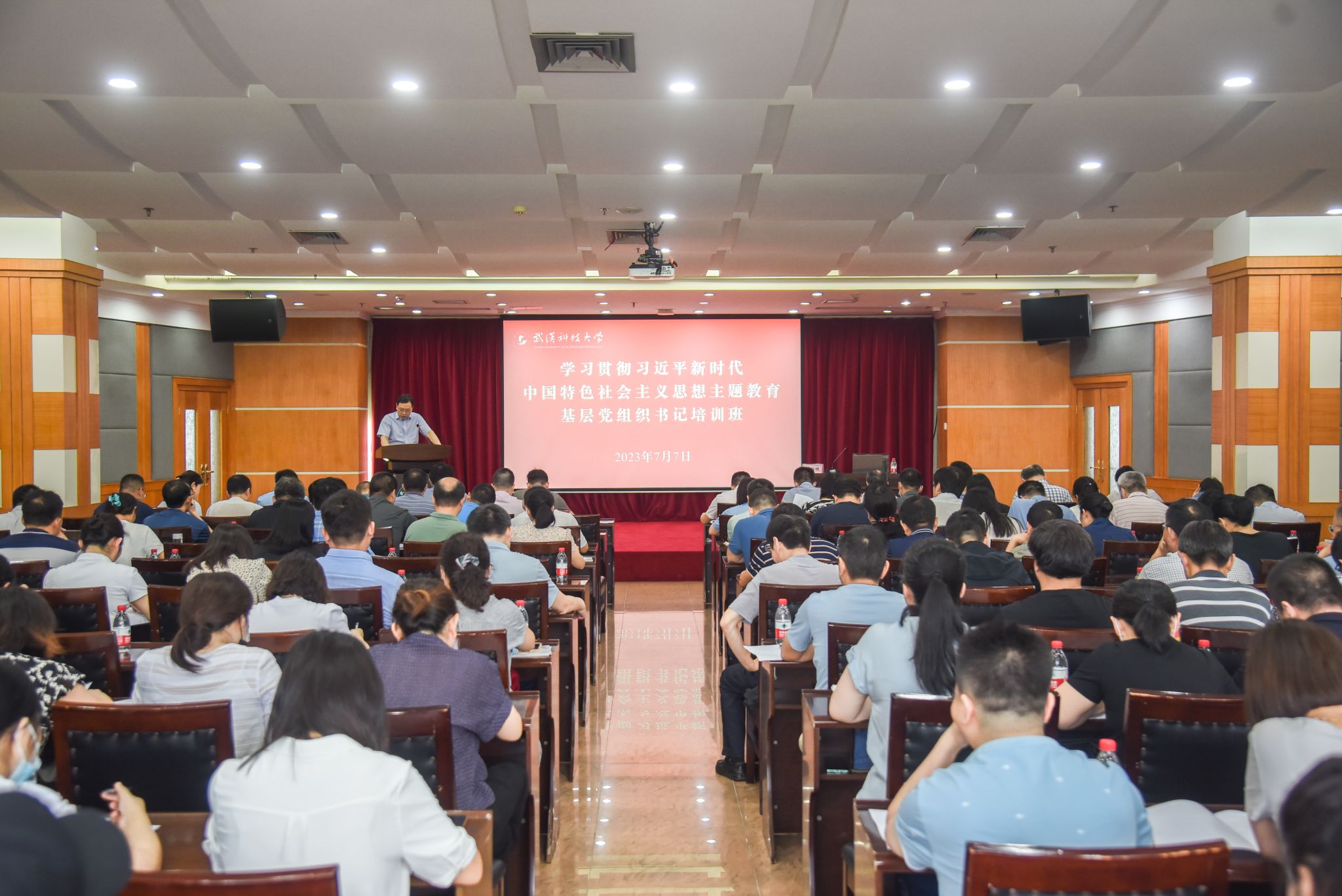 武科大网讯 7月7日,学校在青山校区主楼18楼报告厅举行学习贯彻习近平新时代中国特色社会主义思想主题教育基层党组织书记培训班。党委常委、组织部部长刘时新出席开班仪式并作动员讲话,全校各二级党组织书记、教工党支部书记参加培训。机关党委书记、党校副校长兼党委组织部副部长郑娟主持。