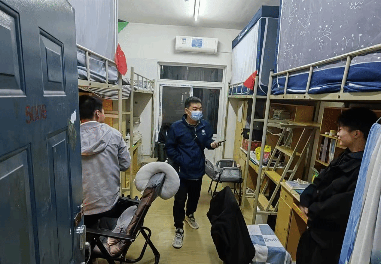 信息科学与工程学院(人工智能学院)辅导员潘鑫正在开展宿舍排查