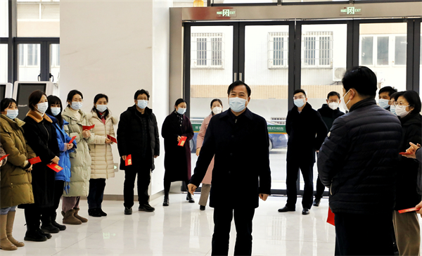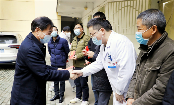 武科大网讯(记者陈孖川) 1月20日上午,春节来临之际,校党委副书记孙国胜代表学校深入一线,逐一走访青山校区、洪山校区、黄家湖校区、附属天佑医院,看望慰问了各校区后勤保障部、保卫处除夕春节值班人员及天佑医院、校医院一线医护人员,向他们送去新春祝福和慰问金。