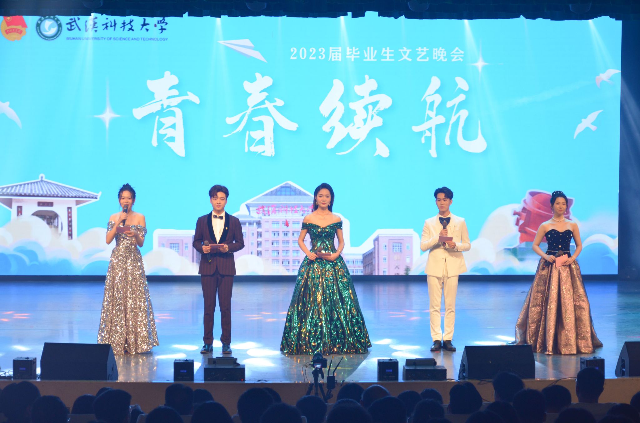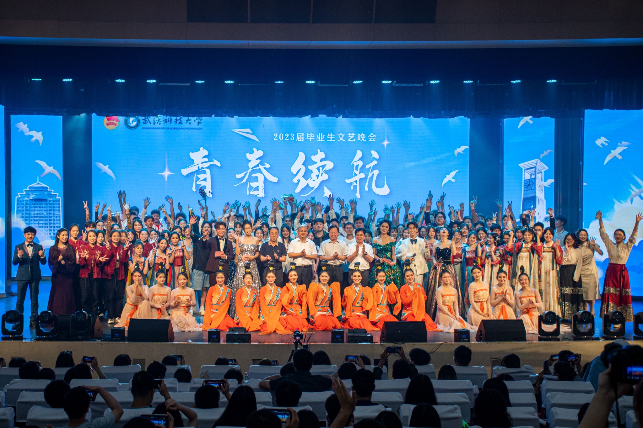 6月18日晚,为欢送我校毕业生,我校于沁湖礼堂举办2023届青春续航毕业生晚会。《盛世国乐》拉开了晚会的帷幕。晚会共分为三个篇章。第一篇章为《沁水青山初相遇》,节目为拉丁舞《绽》、沁湖之声合唱团带来的《Fly to the moon》以及魔术表演《梦回沁湖畔》。第二篇章为《星河为路·展风华》,节目有舞蹈《千年画卷》、相声《校园杂谈》、诗朗诵《是你,是我》以及沁湖之声合唱团带来的《启程》。第三篇章为《此去乘风·铸梦想》,节目有小品《请回答2019》、舞蹈《漆奁楚女图》、歌曲《月亮舞台》以及舞蹈《Now Ready Go》。最后晚会结束,众人合影留念。(梁绮琪 王政全)