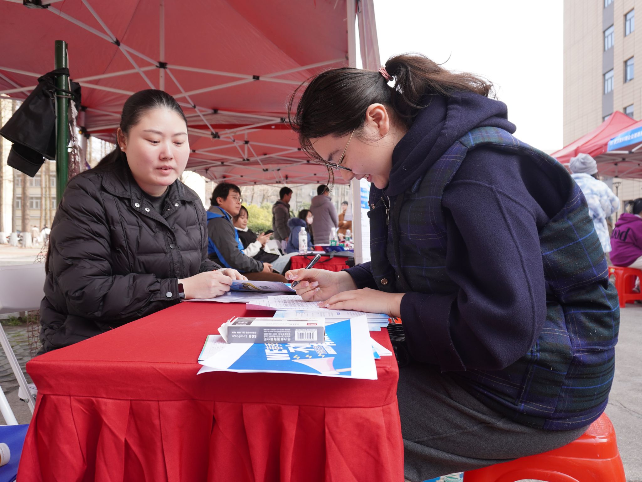 女生投递简历 姜子山摄